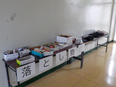 年度末ですので、持ち主がいない物品は、ものによっては処分をする予定です。大きい落とし物(服)等は、本校ホームページの保護者用ページにて画像で確認することができます。ぜひ、ご確認ください。今月24日まで保健室前の廊下に展示しますので、思い当たるものがありましたら、お子様に今一度確認するようお伝えください。