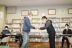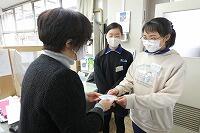 職員室でも同じような光景が見られ、教頭にお礼のコースターを渡しているところを写真に撮ることができました。