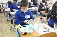 4年生の図工では、空き箱などを材料にして「ドリームカー」を作っています。