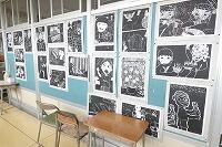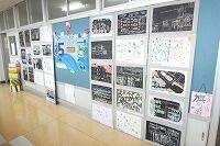5年の廊下に図工の版画が掲示されています。