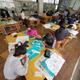 子供たちは、スタンプの形や大きさ、付ける色を選んでは変えながら、思い思いに大作を仕上げていました。
