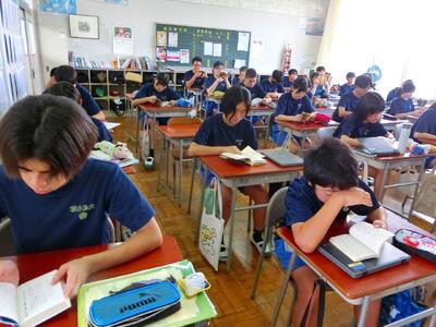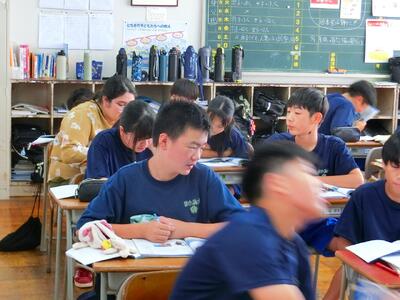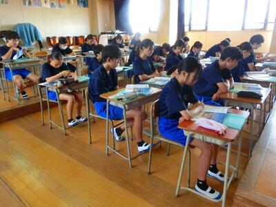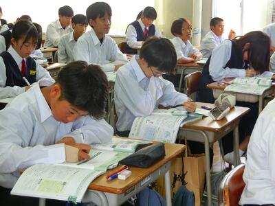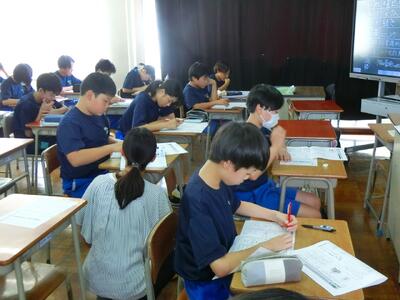 朝の学習時間には、みんな集中して復習していました。朝、いつもより早く登校して、「勉強するため」と朝活をしている生徒もいました。
