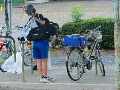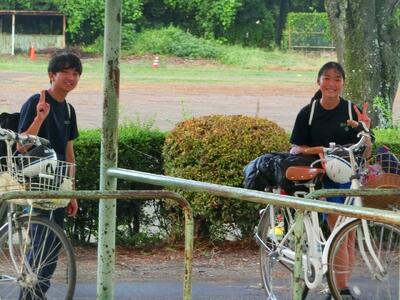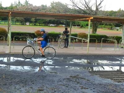朝にカッパを着て自転車で登校した生徒も、帰りは雨上がりの涼しい風を受けて帰路につきました。
