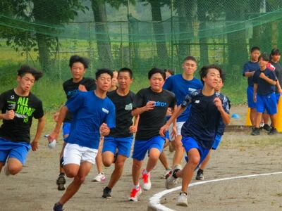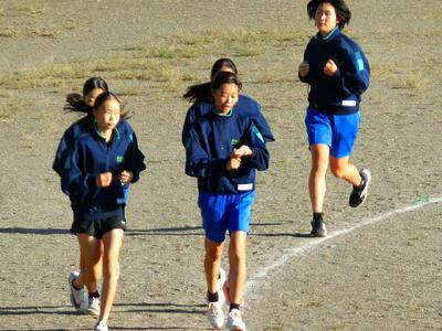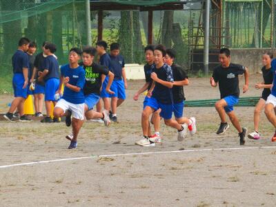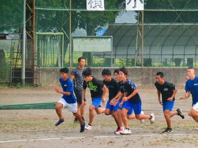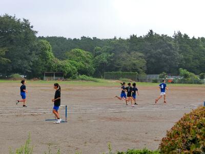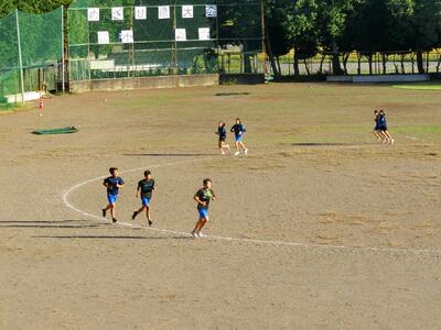 今朝は、秋らしい爽やかな風が吹いている中、郡市新人陸上競技大会へ向けての練習を行っていました。