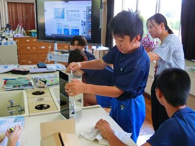 身の回りのものから、発生させて取り出した気体は、何かを実験して調べていました。