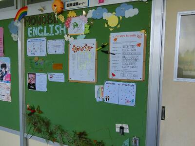 職員室の扉の横に、ALTクラウディア先生が楽しく英語を学べるコーナーを季節ごとに掲示してくださいます。
