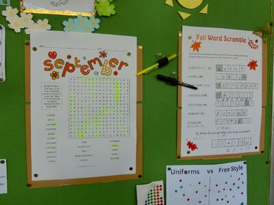 10月31日には、ハロウィーンがあるということで、ALTの先生の掲示は、ハロウィーンにまつわるクイズなどで、楽しめるコーナーになっています。