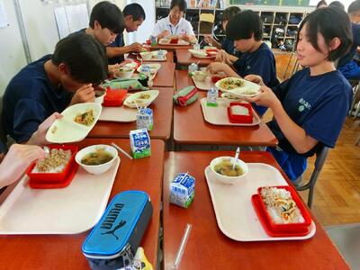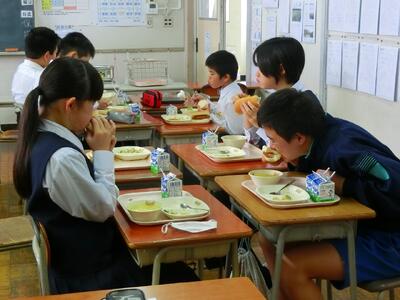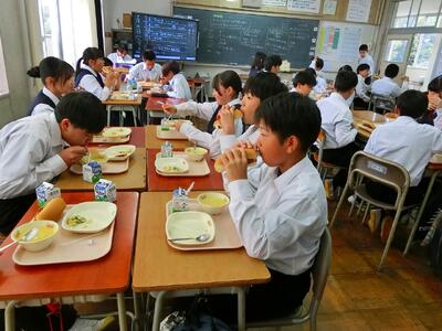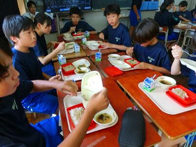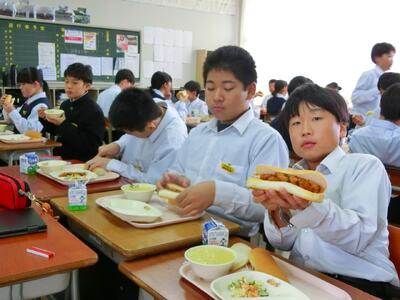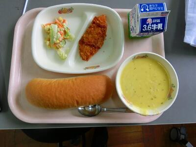 まさに「天高く馬肥ゆる秋」今日の給食は、人気のカレーライスと原宿ドックのリクエストメニューでした。