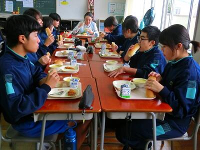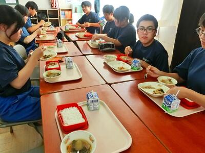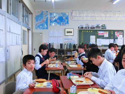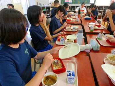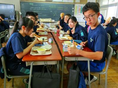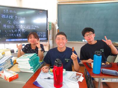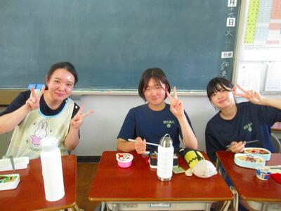 外で食べるにはまだ、暑すぎる天気なので、涼しい教室でみんなで、おいしくいただきました。