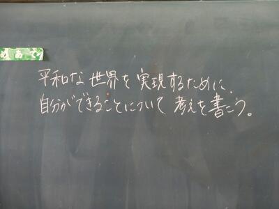 物部中学校では、今月21日(金)に平和教育学習として、被爆体験伝承講話を行います。