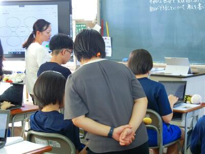 グループで研究授業での成果や課題について話合い共有するなどして研修を深めました。