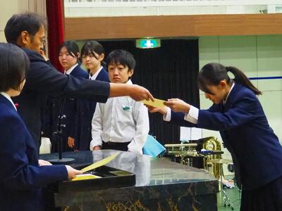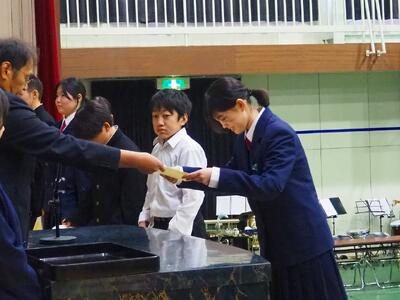 合唱コンクールの成績発表では、金賞は3年1組でした。そして銀賞は、2年1組、1年1組でした。