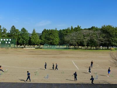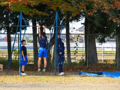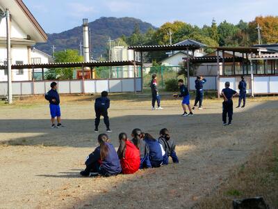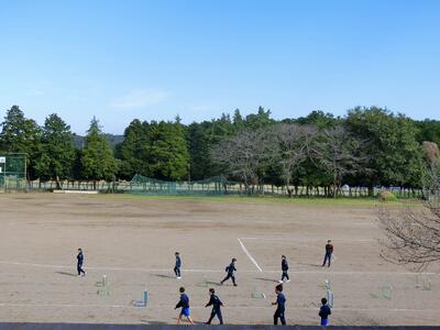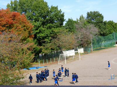日向ぼっこしている生徒やサッカーやキャッチボール、高鉄棒にぶらさがっている生徒たち、今日はいつもより、校庭で過ごす姿が多く見られました。