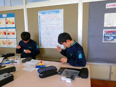 【健康委員会】手洗い石鹸や消毒液の点検・補充を行っていました。