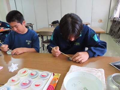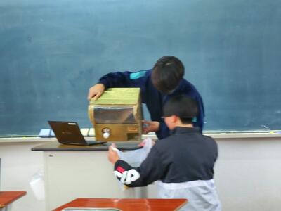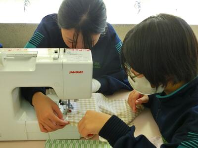 2年生では、技術の時間に、ねぎ、ほうれん草、白菜など野菜の苗を植えたり、手作りの表示を製作したりしていました。