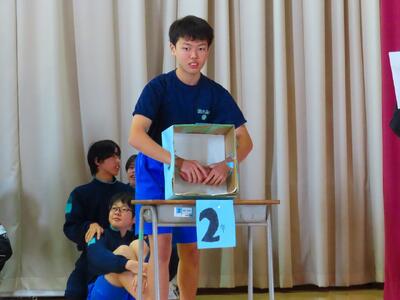 今日は、桜町祭で時間の都合上、実施を見送った生徒会のイベントを、昼休みに体育館で行いました。