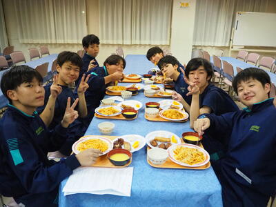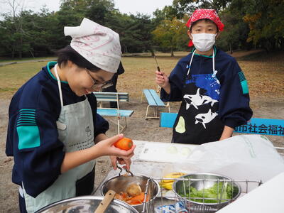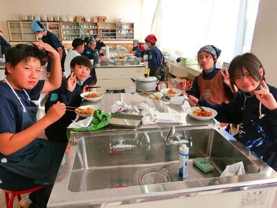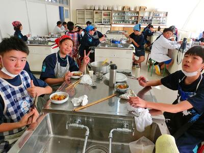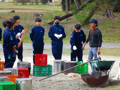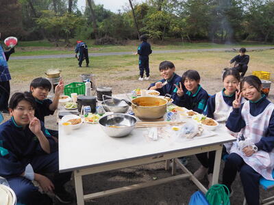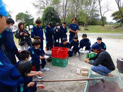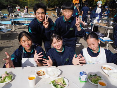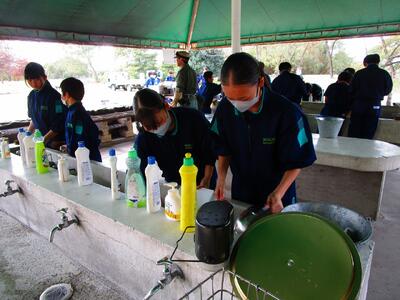昼食にはそれぞれの班が決めた煮込み料理を作りました。