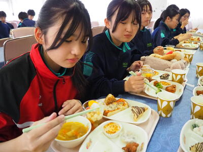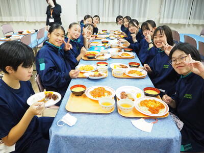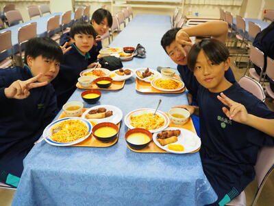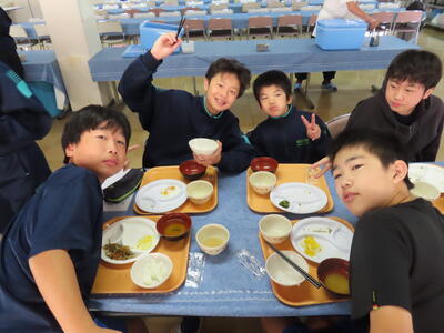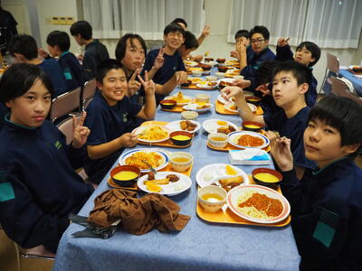 まさに「天高く馬肥ゆる秋」今日の給食は、人気のカレーライスと原宿ドックのリクエストメニューでした。