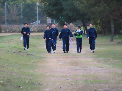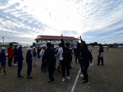 今日は、いよいよ郡市駅伝大会です。今朝は、雲一つない青空が広がっていました。