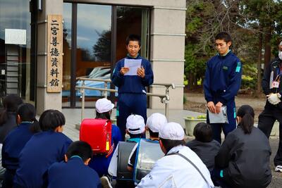 校長先生、二宮分署の方に避難時の講評をいただきました。迅速な避難の大切さを再確認できました。