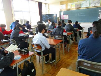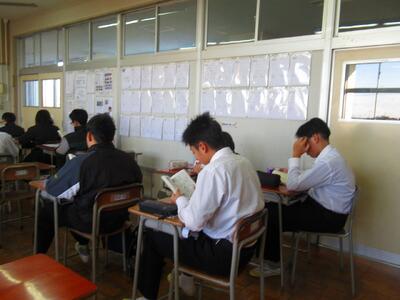 朝の学習時間には、みんな集中して復習していました。朝、いつもより早く登校して、「勉強するため」と朝活をしている生徒もいました。
