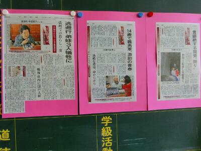 戦後80年を迎えた今、戦争や平和について考える時間をもつために、今週から各学級に関連する本を置いています。