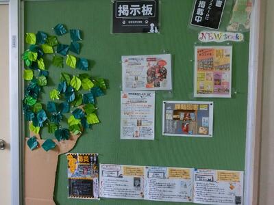 図書館の掲示板には、読書期間限定イベントの案内があったり、書店の方々のおすすめ本の紹介があったりします。