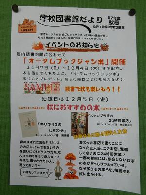 生徒の皆さん、秋の夜長に読書に親しみ、心の栄養をたくさんとって、読書の楽しさを味わってください。