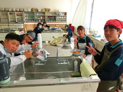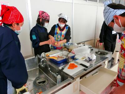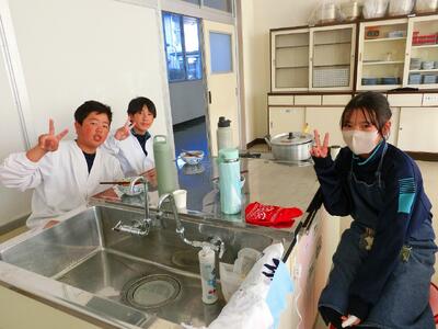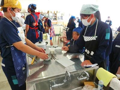 班ごとで、作るメニューは違います。それぞれの役割で、おいしい昼ご飯ができるようにがんばっています。