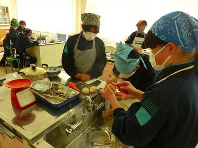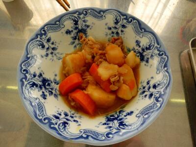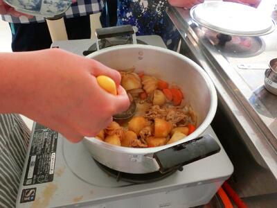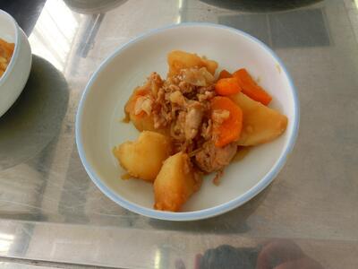 献立は、肉じゃがです。自分たちで作るとひと味違って、味わい深い肉じゃがが完成しました。