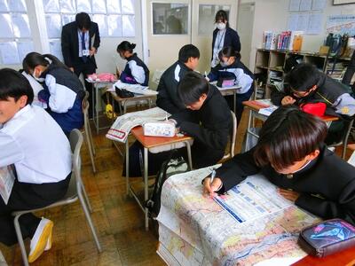 今日は、真岡市の危機管理課の方が来校し、「マイタイムラインづくり」という活動を1年生と2年生で行っていただきました。生徒も初めて聞く活動になりますが、防災意識を高めるために役立つ取り組みの一つです。