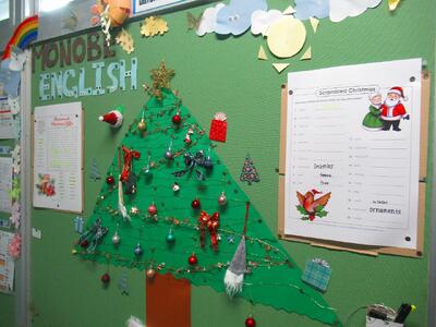 12月になって、壁面にはクリスマスに向けて、わくわくするような掲示が見られます。