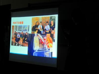 終業式のあと、11月にオーストラリア・ハーヴィー市 ハーヴィーシニアハイスクールに海外派遣に行ったメンバーからの活動報告の発表がありました。