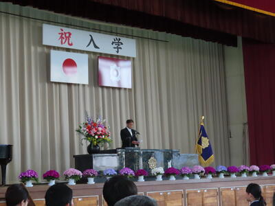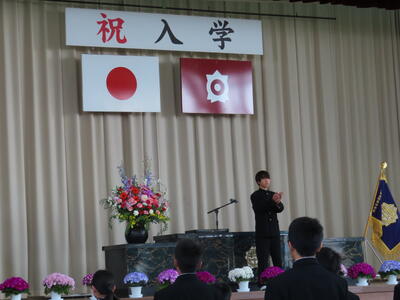 桜が満開の晴天のもと、入学式が行われました。