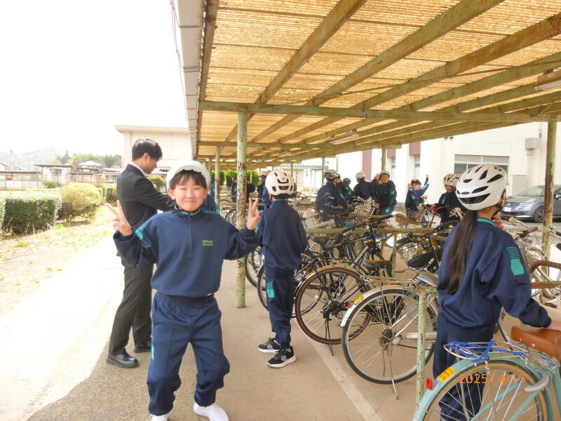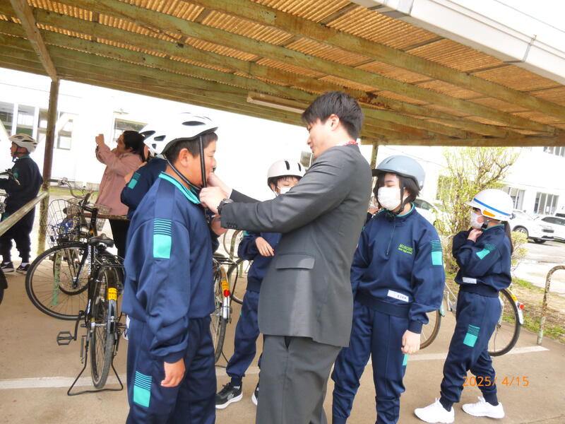 ヘルメットの正しい着用の仕方を確認して、自転車の乗り方、横断の仕方、安全確認の仕方を行いました。