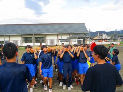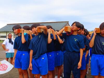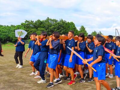 今日は、夏祭りに向けて、御輿練習の2回目です。台風の影響が心配されましたが、校庭での練習を行うことができました。いよいよあと1週間で祭りの本番が近付く夏休みになります。暑さに負けない体づくりと体調管理で、元気に夏を楽しめるようにしましょう。