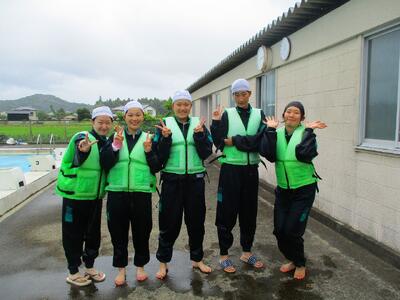 今日は、体育では各学年、着衣水泳を行いました。着衣の後には、ライフジャケットを着用した場合も体験しました。