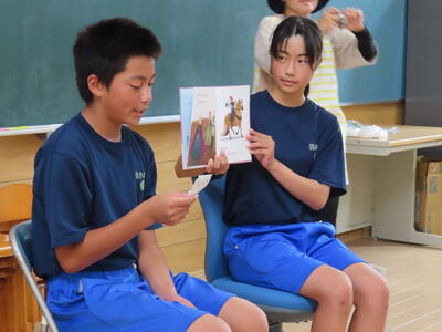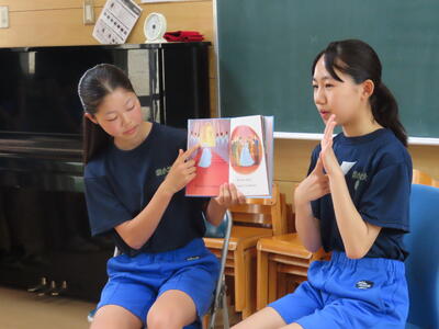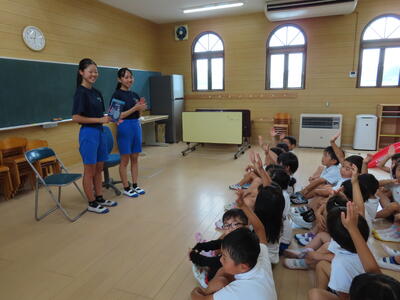 真岡ふたば幼稚園にて、2年生2名、1年生2名が英語で絵本の読み聞かせをしました。