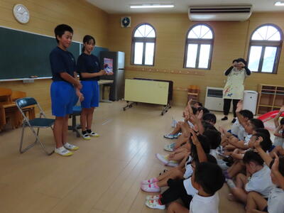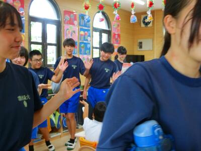 卒業生も多いので、懐かしさを感じている生徒も多いようでした。お世話になった先生方に、自分たちの成長を見ていただける機会にもなりました。幼児の様子を知る貴重な体験の時間となりました。ふたば幼稚園の皆様、ありがとうございました。