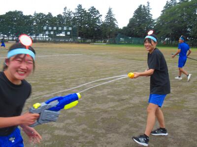 今日の昼休みは、2学年主催の全校生徒での水鉄砲遊び「water world」が開催されました。