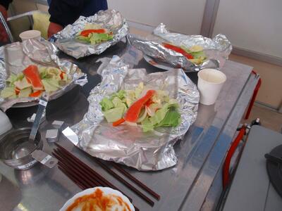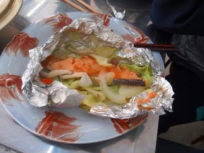 授業の様子 投稿日時 : 01/26 物部中 今日は、1年生の調理実習がありました。 学校支援ボランティアさんのご協力もいただいて、おいしい魚の調理「さけのアルミホイルちゃんちゃん焼き」に挑戦しました。
