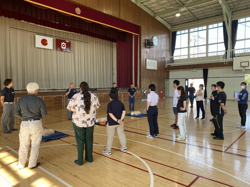 緊急時の胸骨圧迫のやり方やAEDの使い方についてご講話いただきました。