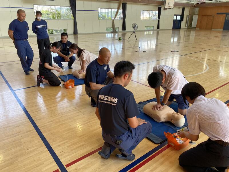 本日、二宮分署の救急隊の方をお招きして、救急救命講習会を行いました。