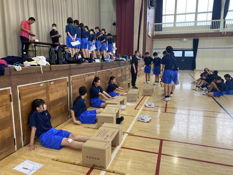 本日は雨天でしたが、1.2時間目に新体力テストを行いました。