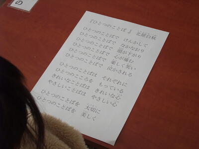 校内の人権集会12月8日(金)に先駆けて、12月の朝会では「言葉」について取り上げ、話をしました。