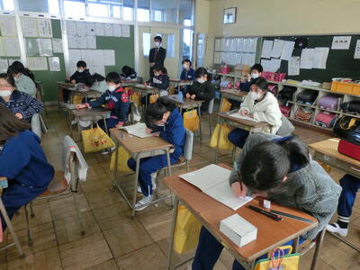 今年度の修了式を校内放送で行いました。新型コロナウイルス感染症の影響で様々な制約がありましたが、充実した学校生活を過ごす児童が多かったことをうれしく思います。「校長からの宿題」『自分の命は自分で守る』をしっかり守り、有意義な春休みをお過ごしください。