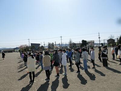 少々風が強かったのですが、青空の下、新任式と始業式を行いました。
