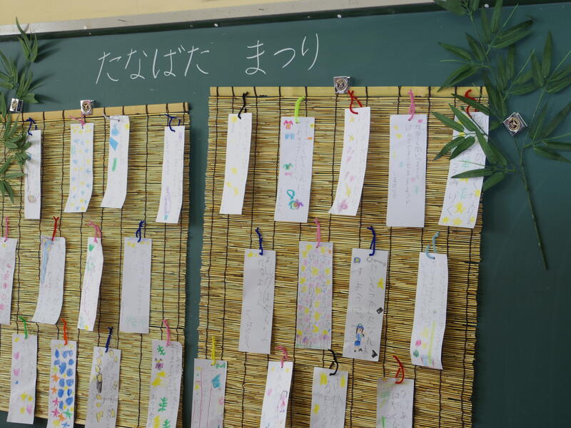 他の教室を回ってまた来てみると、子供たちが短冊に書いた七夕の願いを発表し、短冊を飾っていました。