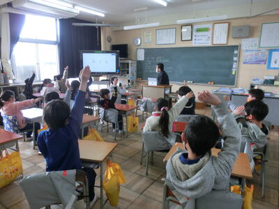 学校は、勉強するところです。先生の話をよく聞いて、しっかり勉強し、勉強が大好きになりましょう。そこで、今年は、今やっている学習の約束「せ・め・て」を常に意識し、自分から進んで勉強するよう、がんばってみてください。また、勉強だけでなく、体力をつけることも大切です。体を動かし、運動が大好きな子になりましょう。そこで、今年は、体育の授業や運動タイムなど、体力づくりに自分から進んで挑戦するよう、がんばってみてください。