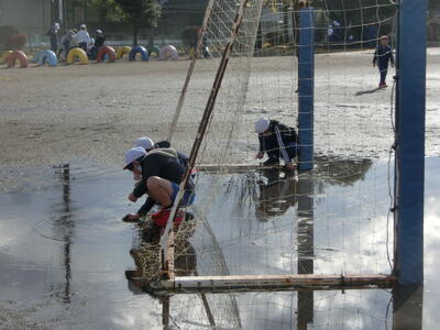 昨夜からの雨が上がり、昼休みには外で元気に遊ぶ子供たちの姿がありました。グランドはぬかるんでいましたが、とても楽しそうでした。